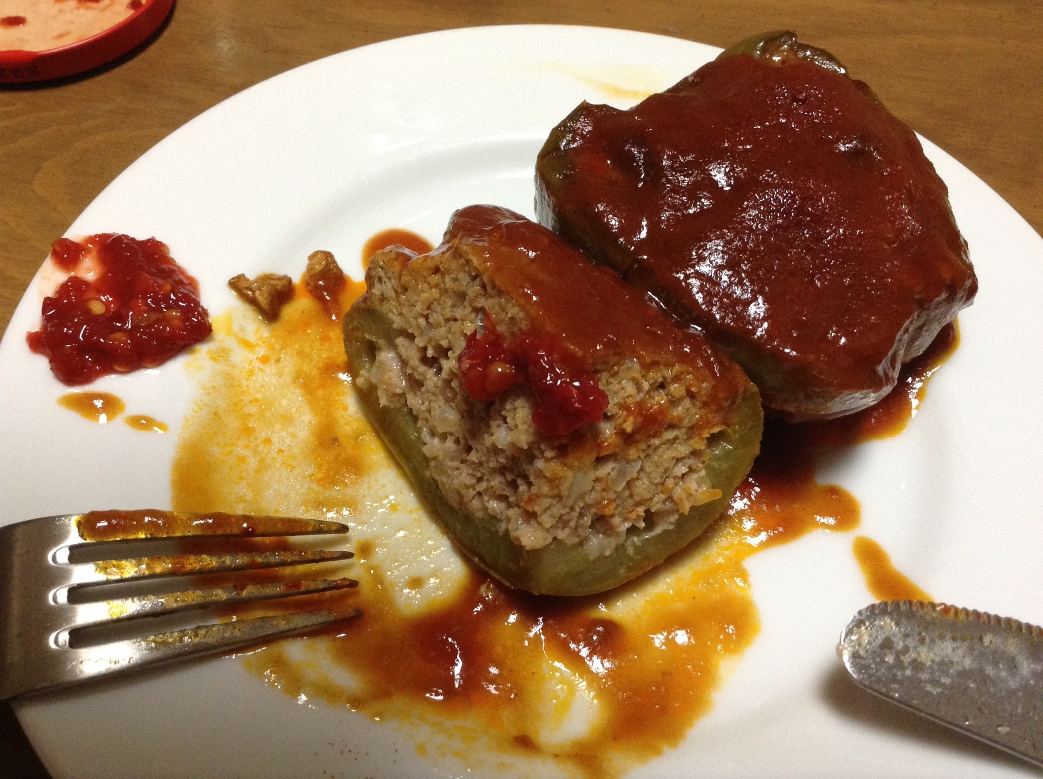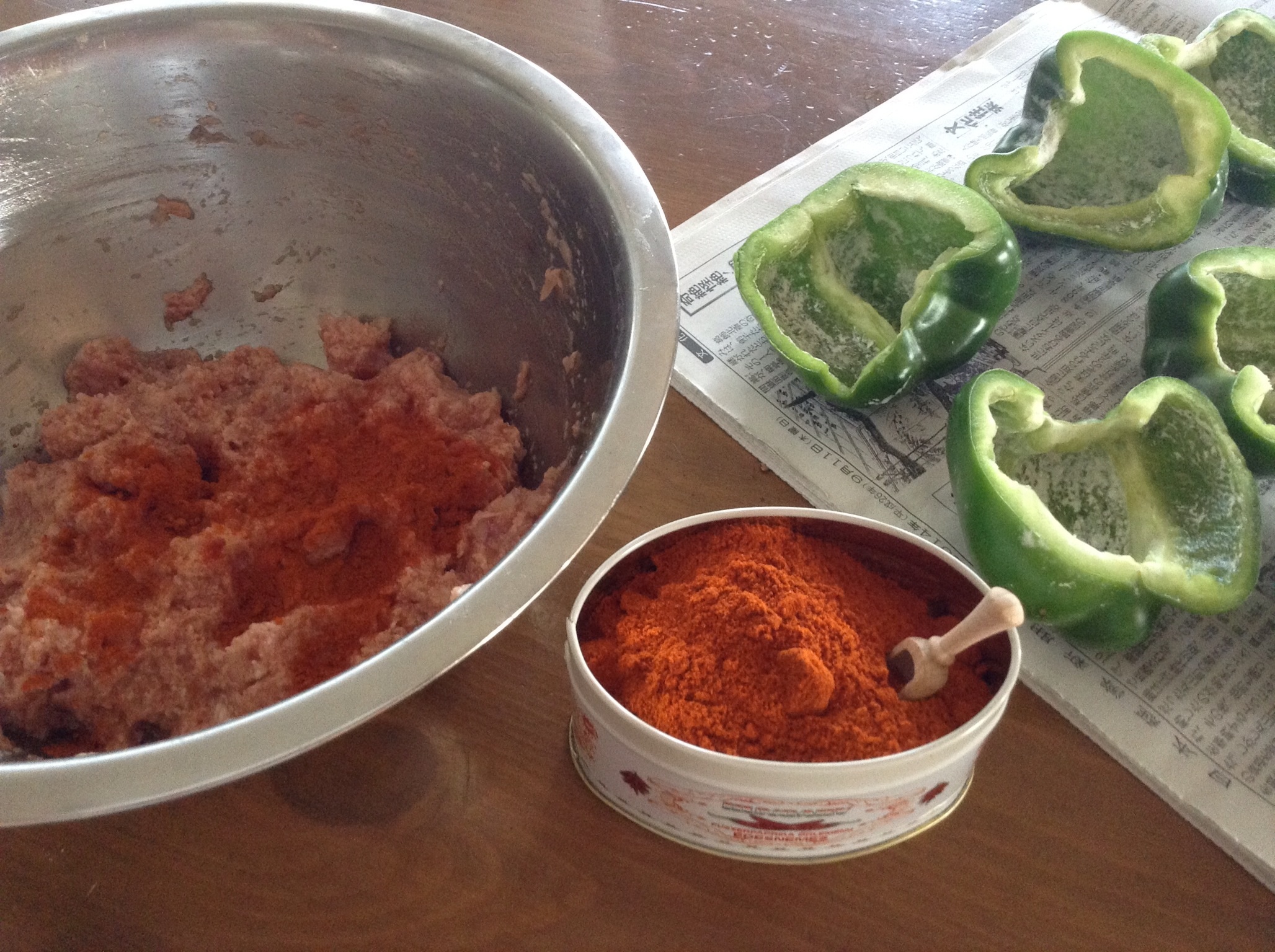 もうパプリカペーストが喜んで肉詰めに乗りましたとも。