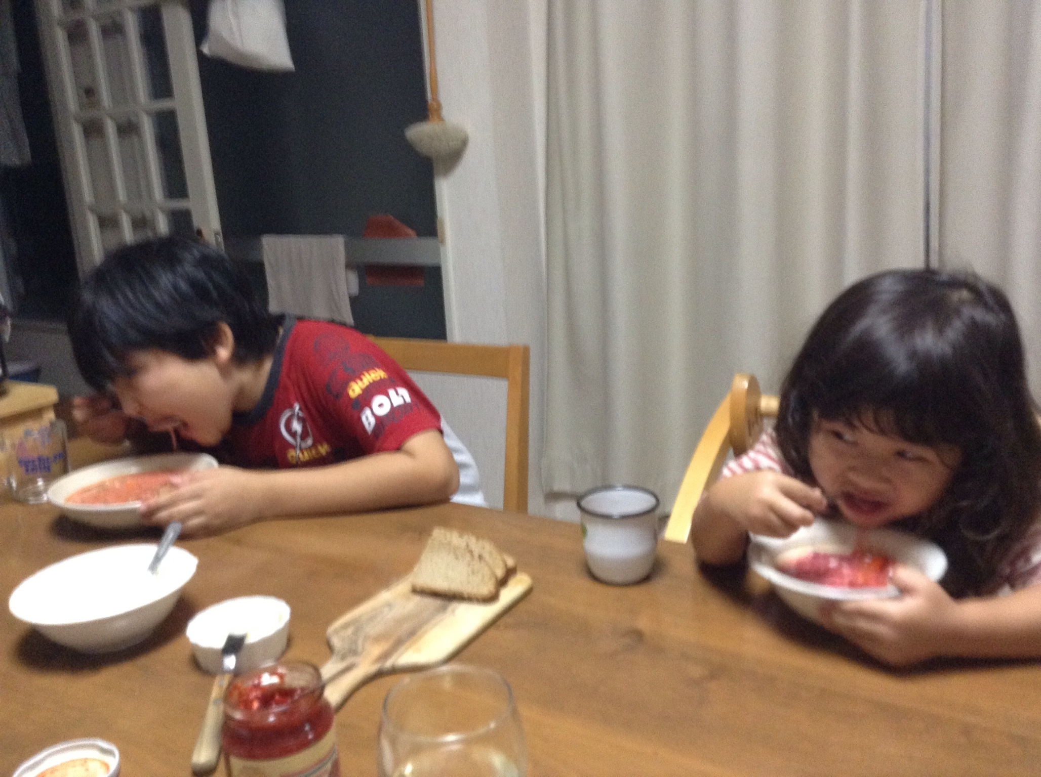 頂き物は記憶が新鮮なうちに、が合言葉。暫く続く東欧テーブル。勿論、トイレトレーニング中の三歳幼女とその兄十歳にも、容赦無く隙間風は東の方から吹き付ける。