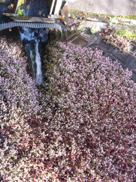 川に注ぐ水流口に広がるカワイイ花の名前は何だ?