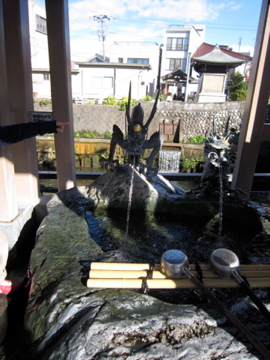 いたち川添いには何故か昔から立山の伏流水が所々湧いていて,霊水として親しまれている。こちらの地蔵尊の湧き水は有名な「龍のほう」の霊水。川向こうのお堂から湧くのは「鯉のほう」の霊水。味が微妙に違う分,固定ファンも二手に分かれる。