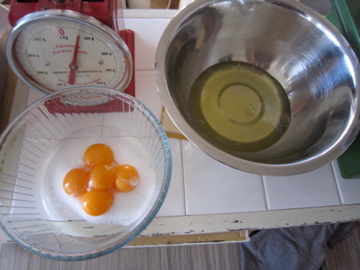 ベーキングパウダーは使わずに,卵5個をふんだんに。