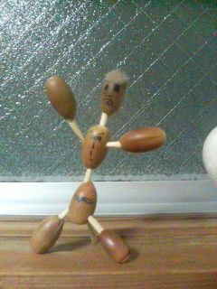 少年がひろってきたドングリと、竹ぐしで出来ている。蝶ネクタイもしてるし、ベレーも被っている。オマケに自立タイプだ。