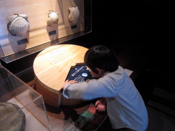 面白いもんで,いっつも同じ常設展示を見ているにも関わらず,毎回食いつく所が違う。今回は文字が多少読めるようになったお陰で,文字情報にも敏感,イッチョマエに学習中。「ふ〜ん☆なるほどぅ〜☆←理解度は不明」