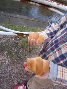 でも何やらてれくさいので、パン好きに違いない、いつも親切なお店の職人さんに「いや~・・・お昼に内緒で独り占めして食べようかと思って・・・」と言うと、優しいおねいさんは笑ってくれた。ヨカッタ。