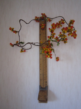 三品目ッ!ツルウメモドキ。壁にかけてこのまま飾りながら乾燥させます。