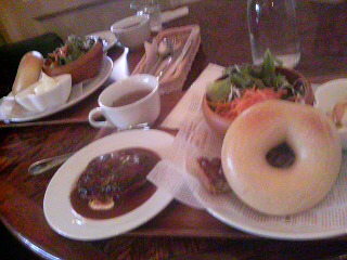 オマケといえば、頼んだベーグル「サンド」セットが、何故かベーグル「ランチ」セットになっており、+3・5キロの身に待ってました☆のハンバーグ・デミグラスソースが付いてきたのだが、もう太ってるし、オマケに美味しいから、これは良運とした。好好(ハオハオ)。