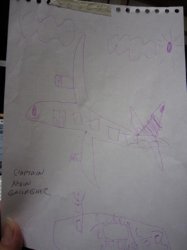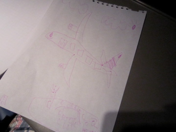 飛行機を降りる前に,オバチャンは「描き続けなさいよ〜未来の画家センセ☆」とメリケンジョークとともに,絵を返してくれた。
