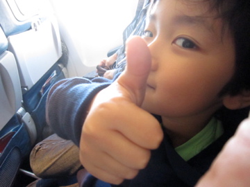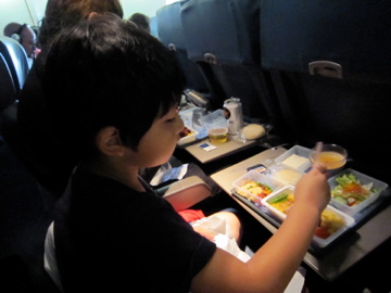 DE○TAの侘びしい機内食にもがっつく少年。空の旅路が殊の外愉しいご様子。へえ。