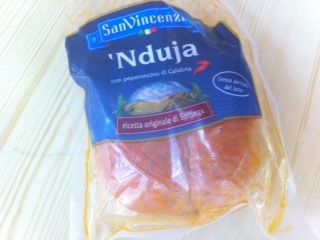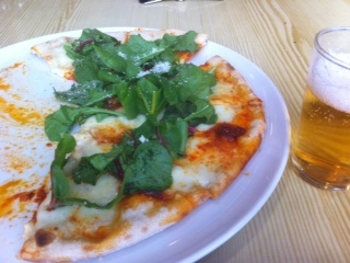 やっぱ釜焼きピザね。具はイタリアの豆板醤・豚肉とスパイス&唐辛子入りの生サラミ「ウンドゥイア」。「N」からはじまる名詞、あるんですねェ〜。