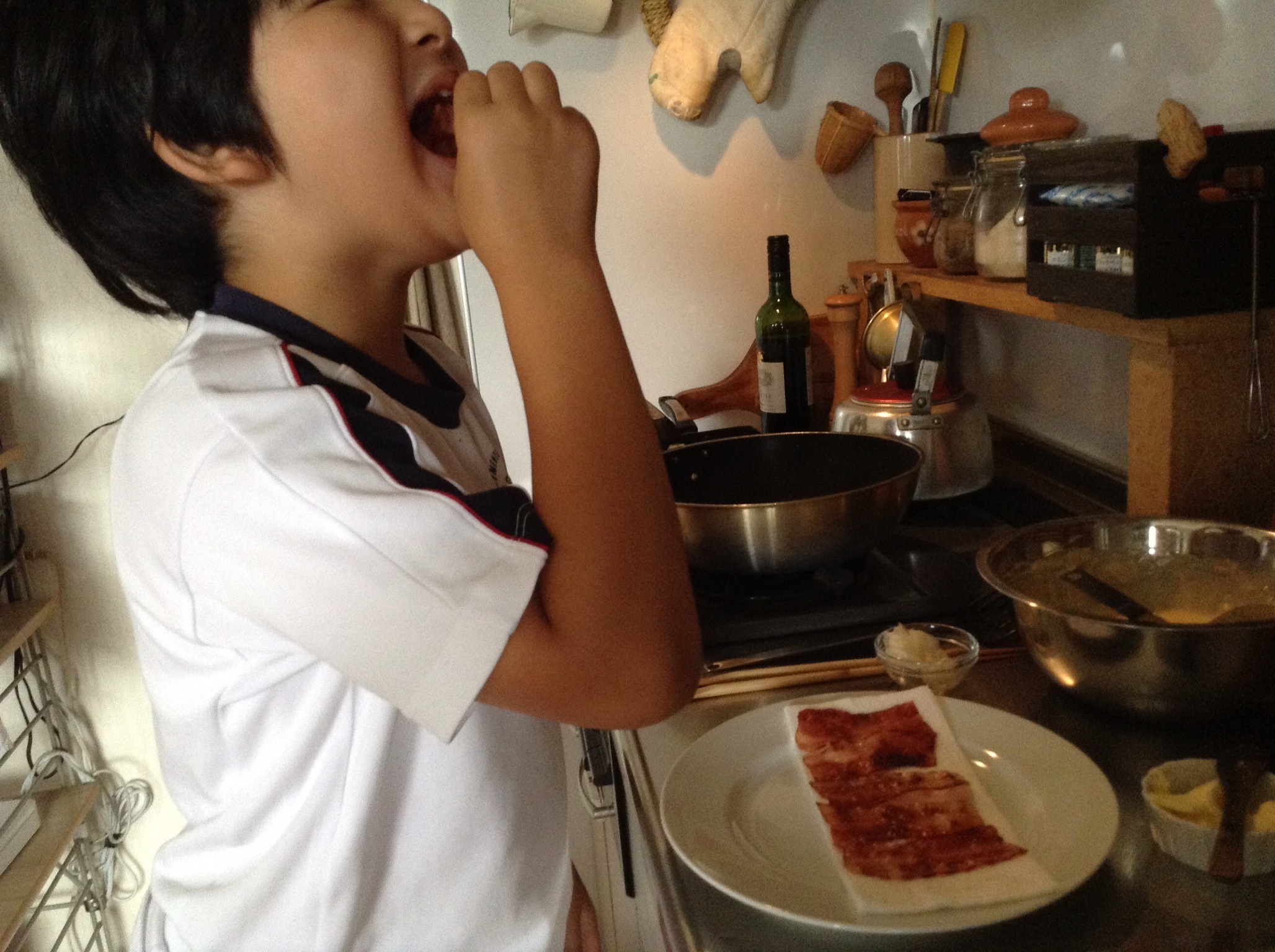 朝食後早々、ベーコンをお代わりするベーコン@7:00am。