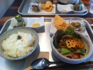 同じく茹だってる輩を捕獲、久々に呉羽地区の「絲カフェ」さんへ。期間限定グリーンカレー。給食?
