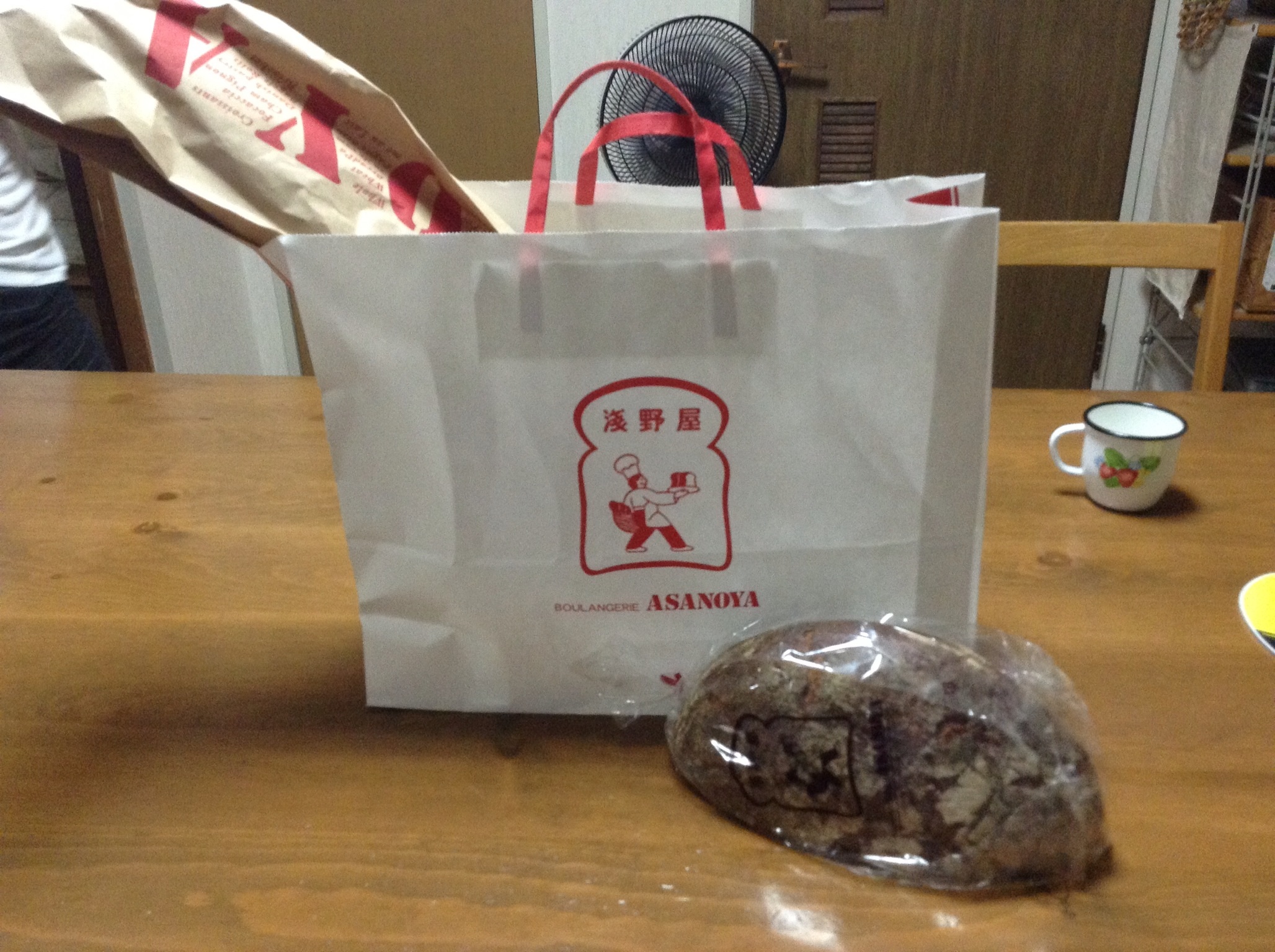 手前のデカイ奴(やっぱデカイのがいい)は、我が家的には国内最高峰の黒パン。あくまでドイツ風です。酵母にサワー種という、小麦やライ麦の粉と水を混ぜてつくる生地に、乳酸菌と酵母を主体に複数の微生物を共培養させた天然酵母を使っているため、独特の酸味が加わる伝統的な黒パンで、浅野屋さんのそれは食感は意外に軽く、ほんのり甘いのが美味しい。あーーー、いいなーー、軽井沢人。