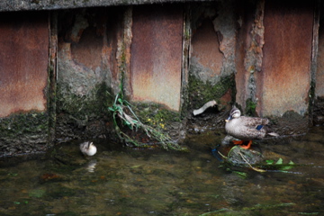 橋の上には多くのカモウォッチャー(じいちゃんばぁちゃん)がウロウロしていて,今日は9匹連れがおっただの,生まれたてのんが8匹おっただの情報をくれるのだが,一度も多頭連れを目撃できずにいる。隣のおばちゃんが一度9匹連れを目撃したときに,大声で呼んでくれたらしいんだけど,すんません,ウチ上の方の階でしかも裏の方なんです。玄関に一眼レフ,ちゃんと準備してあるんだけどね。皆様にご披露できれば良いが。
