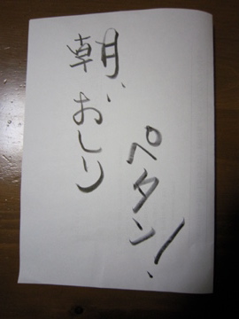 けして忘れてはならぬ。2日間寝る前にテーブルのど真ん中に書き置き。