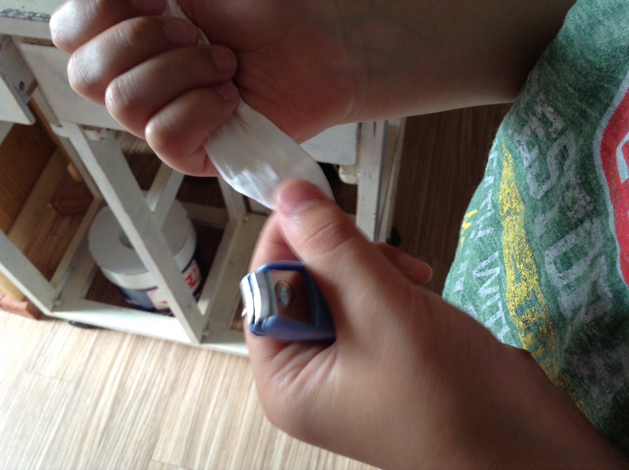 ティッシュに包まれているのは、切ったツメ。