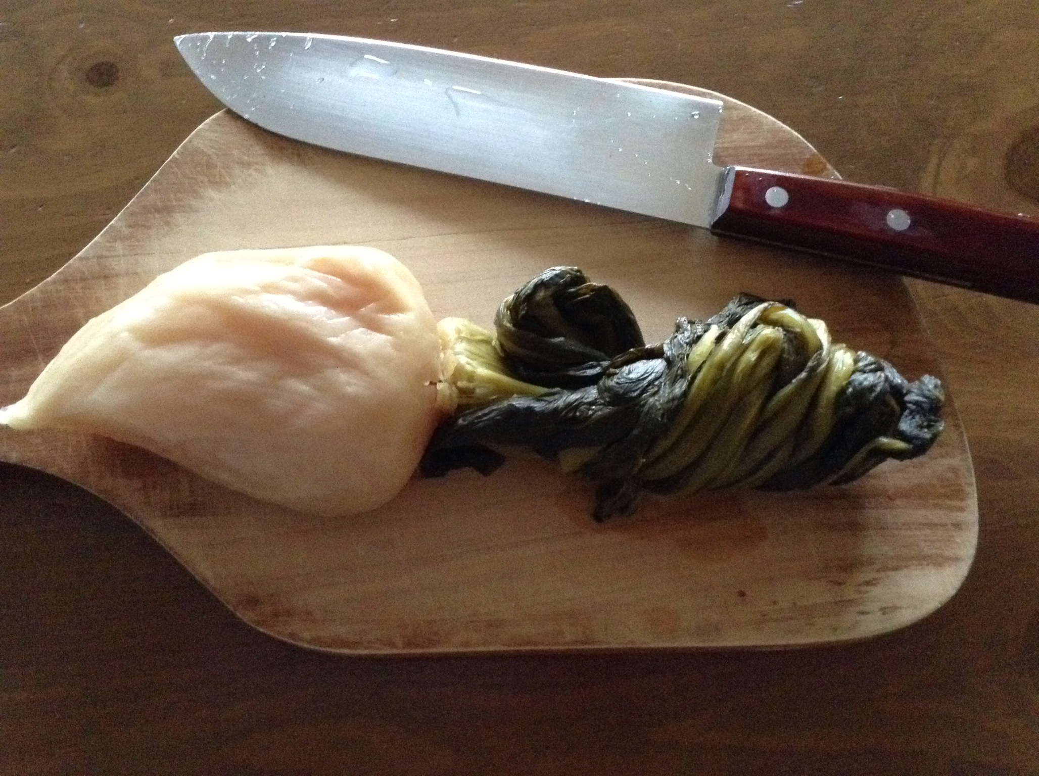 実は贅沢に厚切りにして、繊維質の強い葉の部分は微塵に。