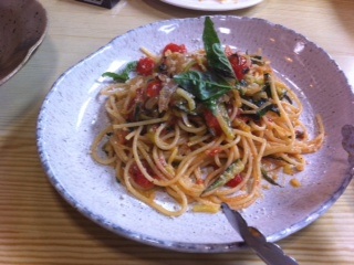 採れたてズッキーニとフレッシュトマトのパスタ。