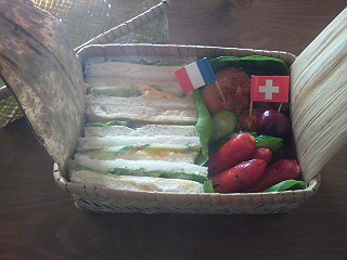 私は望遠一眼レフを抱え,少年はパンの耳。