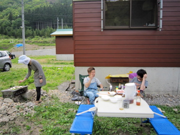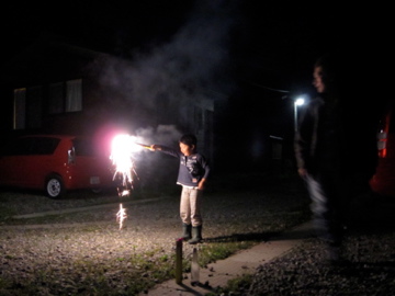 BBQの後のお約束や(これも畑の動物除けになる)。