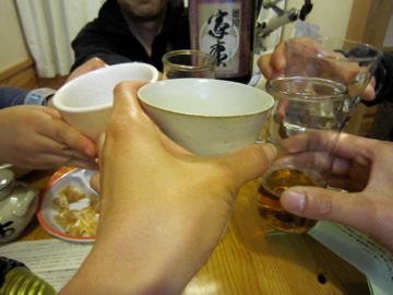 ま,満身創痍でも何でも,お山で大好きな客人が一緒なら,どんどんお酒も進むってもんだぜベイベーッ!もいっちょ,カンペーッ!!!