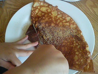 少年はクレープ所望ね。バターとブラウンシュガー。
