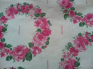 エアクッションに包まれた品物を取り出すと,外箱の底にも,バラの花の包装紙。