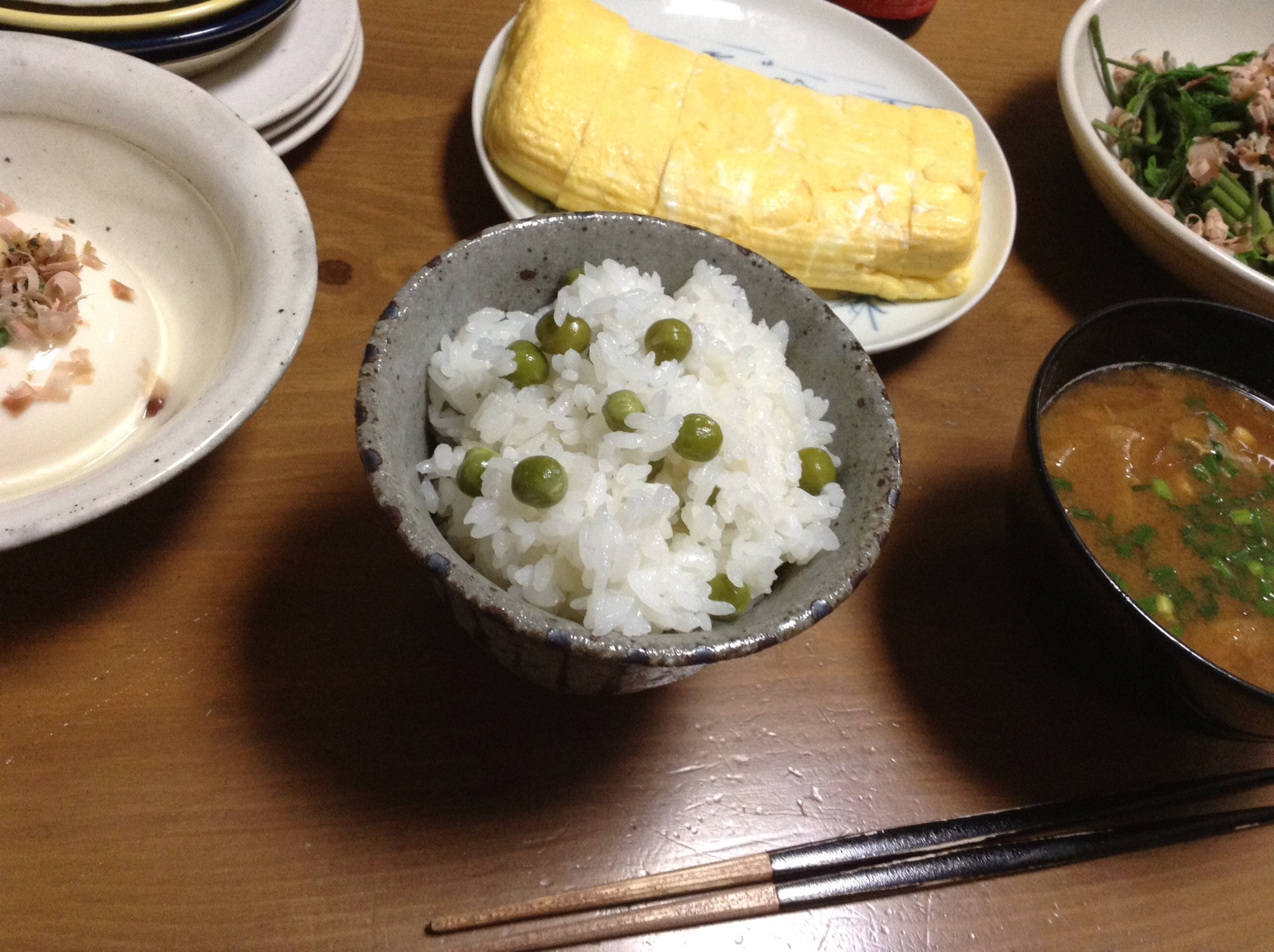 と、畑はまだ土作りの段階なので。取り敢えず買ってきたグリーンピースで、来るべき収穫の予行演習をば。