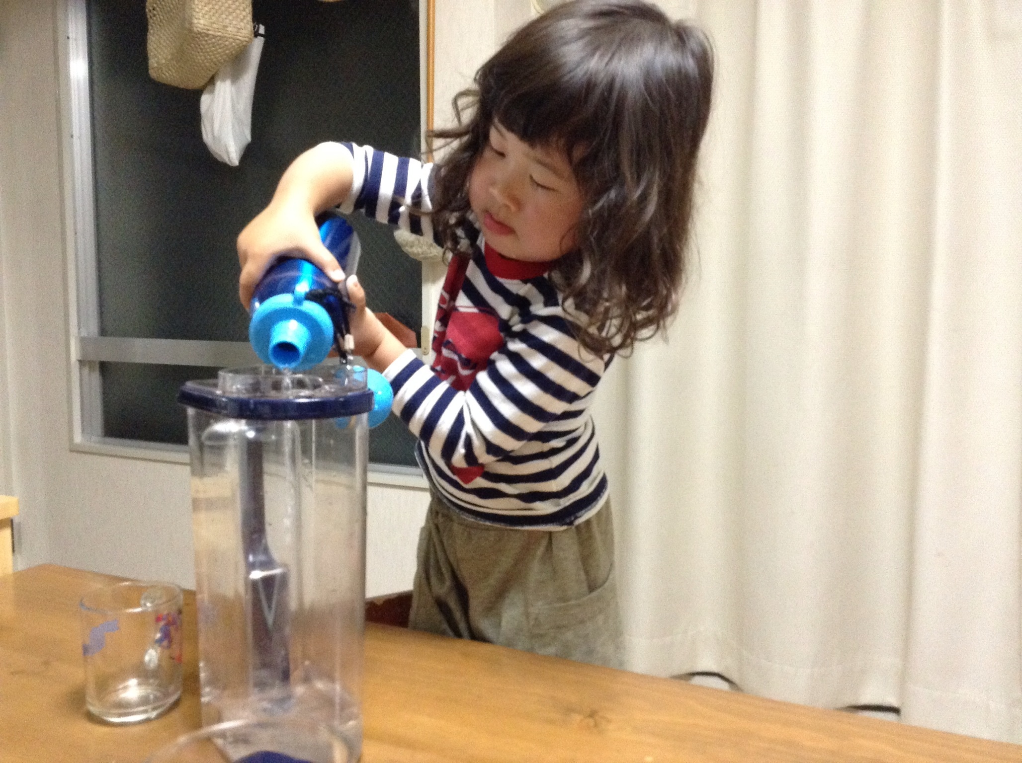 悪魔の三歳児に早突入した二歳半(天邪鬼子)の最近のマイブーム「注ぐ」。