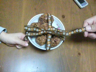 栗まんじゅう・ニラ餃子・味噌漬けを購入。おまけにミカンも3個貰った。うふふふふ。何か嬉しい。いつも少年にオマケしてくれる。おじさん,ありがとう。