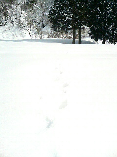 トレースしながら,やべ,その先に大量の血とウサちゃんの絶命した姿があったらどうしよ・・・と心配してたら,足跡によると旨くウサ子,逃げおおせたみたい。ほッ。