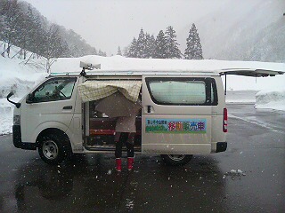 辿りついた町のアカリ,大長谷温泉の入り口には,ジャンジャン演歌を鳴らす車が一台。あッ!移動販売車だッ!