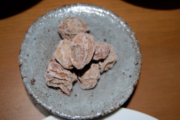 茶梅とは中国茶で甘く煮た梅で,これが凍頂烏龍茶と良く合う。台湾の茶芸店で出されるお茶の友だ。旨いんだコレが。が,残念ながら中国本土ではどうやら見あたらなかったらしい。そんな馬鹿な。真逆,台湾茶芸道のみ供されるものなのか?
