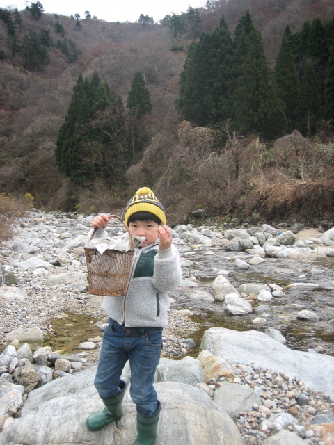 昨年はもう雪がふっとってのう・・草勢も落ち着いとったから川べりでも散策すべぇと分け入ったら見つけたんじゃ。コレを逃すと,もう来年の4月までお預けなんじゃ。