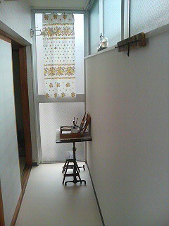 化粧スペース。引越とともに,以前の築37年の公団から,こちらの部屋の片隅に移動してきた。因みにここは廊下のようだが,実はサンルーム(物干しスペース)だ。