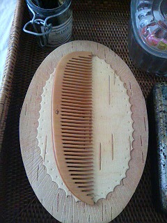 一本の櫛を作るため,10年間黄楊を寝かせるそうで。