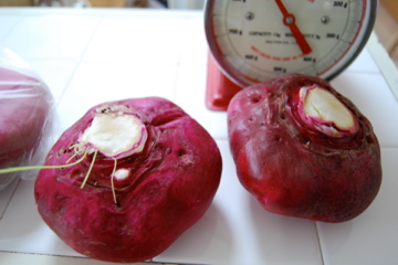 赤カブ。岐阜県境に近い大長谷の冬の特産物だ。
