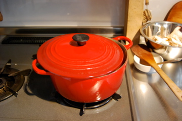 このまま1時間,ひたすらルクルーゼちゃんにおまかせ。なんでもおいしくする魔法の鍋。困ったときのルク頼み。