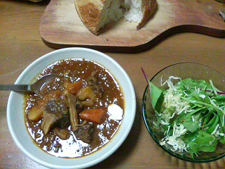 こうして夜の7時には,晩ご飯にビーフシチュウが登場する。