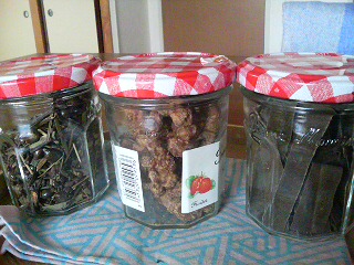 左から、健康茶(以前友人@りりあんから頂いた、ハブやらドクダミやらの入ったもの)