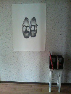 貼ろうと思えば貼れる。が,いかんせん,この写真。だって5年間履いて履いた靴ですよ。ケージツ品は貼る場所を選ぶ。旦那さんに言わせると「な・・・何故履き古した靴の写真を買う・・・」というわけで,勿論ダイニングには貼れないし,寝室にもちょっと。