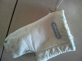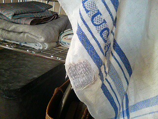 もう裾のあたりはボロッボロになっておったが継ぎ当て,穴は塞ぎ,千切れた引っかけ紐は新たに麻紐でくっつけた。これも8年選手。別れるには口惜しい。
