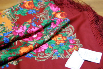 大抵こんな花柄のものが多いようです。花柄オン花柄が,東側のばーちゃん達のファッションセンスの見せ所。それにしても,目を惹かざるをえない,このヴィヴィッドな色合わせ・・・富山でこれ頭から被ってたら,捕まる・・・。お山のおうちの冬衣装に決定。