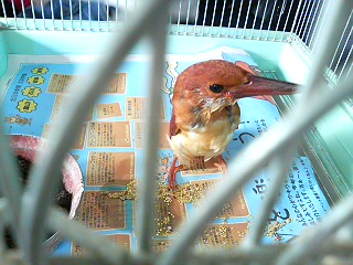 アカショウビン。かわせみの仲間で,稀少個体だということ。山里に住み,街には生息しないこと。(切られていると思っていた)羽はもともと短く,だがしかし怪我をしていること。カラスに食べられることもあるということ。飼育は通常無理ということ。そして,この人は女の子だということを教えていただいた。真っ赤なクチバシのおんなのこ。