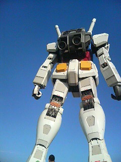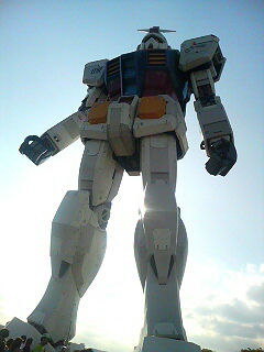 ガンダム台場で夕日を背に、立つ。←マジでかい