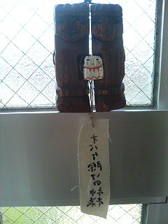 少年は部屋に入るとき,チラとおばけ除けの神様を見やる。時には拝んでいる所を私は確認した。間違いないよ,少年,だって「おばけ除けの神様」って書いてあるし。