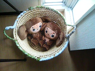うちの少年はかつて与えられたぬいぐるみというぬいぐるみにまったく興味を持たず,ただひたすらウルトラマンのプラ人形を溺愛してきた。しかし,遂に・・・なんといいタイミングで,彼のぬいぐるみアンテナにビビビッとくる一品(二品)が我が家に来た。とある学生さんが旦那さんに下さった,チェブラシュカのぬいぐるみだ。