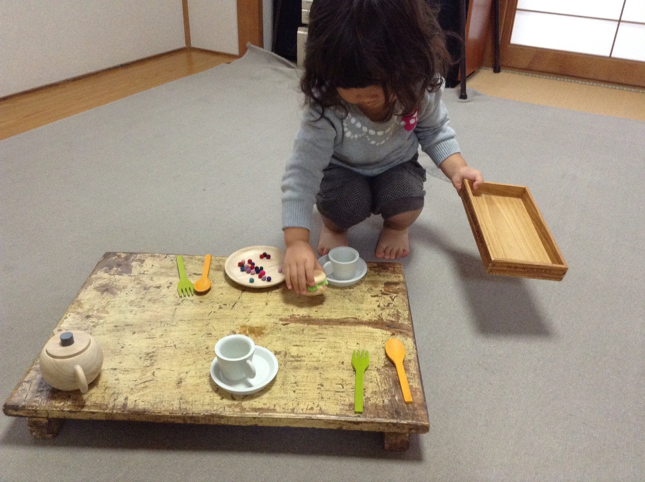 まさに今、我が家のオムツ女子二歳三ヶ月が遊びスパイラル真っ只中である。