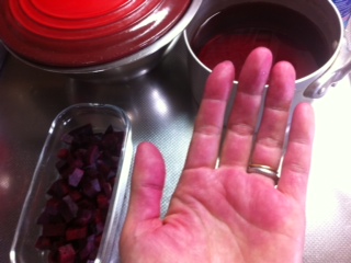 調理中にビーツの汁が指先をピンクに染める。血の気がパァッと指先を照らすような桜色、洗い流しても少しの間は楽しめる台所のウットリタイムだ。