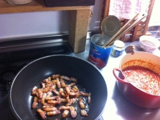 ところで生ベーコンの生って、一体…何れにせよフツーのベーコンとは明らかに違う香りと脂身のシッカリさ。包丁で上手くきれねぇ。