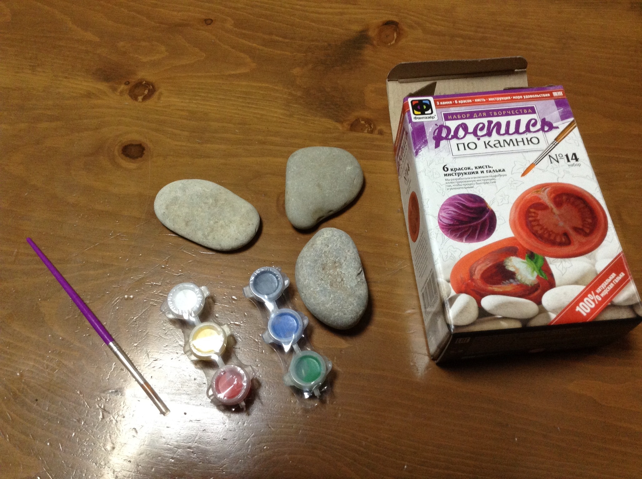 ご覧の通り、平べったいただの石と六色の絵の具と筆がパッケージングされている。以上。